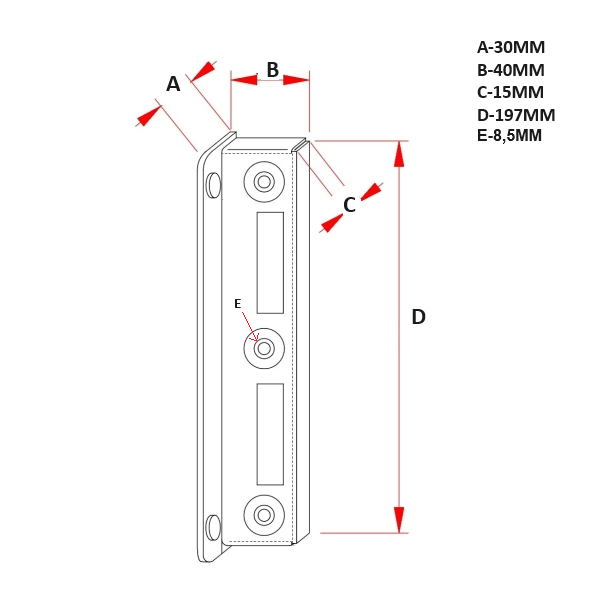 Przeznaczony do kaset z zamkami i profili furtki 40×40, 40x60mm, 40x80mm  oraz innych