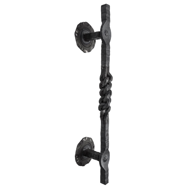 „TwistForge” to stylowy pochwyt wykonany z kutego żelaza, który łączy tradycyjne rzemiosło z nowoczesnym designem. Charakteryzujący się wyjątkową, skręconą konstrukcją i rustykalnym wykończeniem, jest idealnym wyborem dla tych, którzy cenią sobie unikalność oraz trwałość. Doskonale pasuje do drzwi, bram, a także jako element dekoracyjny lub funkcjonalny w stylowych wnętrzach.